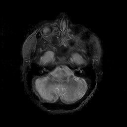 Click on sagittal image to select slice. Click on thin tickmark to change timepoint, or thick tickmark for overlay.