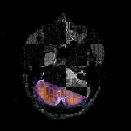 Click on sagittal image to select slice. Click on thin tickmark to change timepoint, or thick tickmark for overlay.