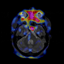 Click on sagittal image to select slice. Click on thin tickmark to change timepoint, or thick tickmark for overlay.