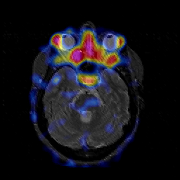 Click on sagittal image to select slice. Click on thin tickmark to change timepoint, or thick tickmark for overlay.