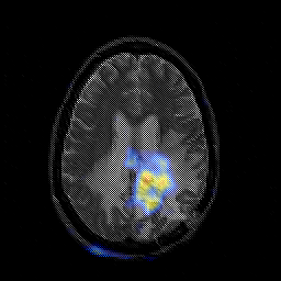 Click on sagittal image to select slice. Click on thin tickmark to change timepoint, or thick tickmark for overlay.