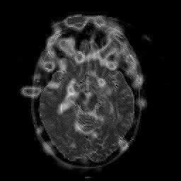 Click on sagittal image to select slice. Click on thin tickmark to change timepoint, or thick tickmark for overlay.