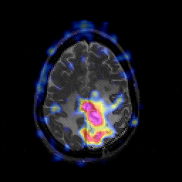 Click on sagittal image to select slice. Click on thin tickmark to change timepoint, or thick tickmark for overlay.