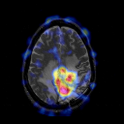 Click on sagittal image to select slice. Click on thin tickmark to change timepoint, or thick tickmark for overlay.