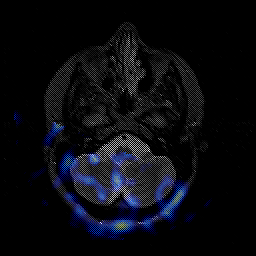Click on sagittal image to select slice. Click on thin tickmark to change timepoint, or thick tickmark for overlay.