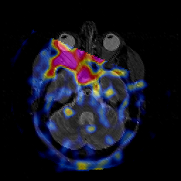 Click on sagittal image to select slice. Click on thin tickmark to change timepoint, or thick tickmark for overlay.