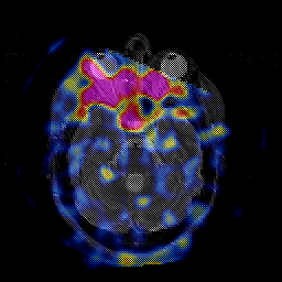 Click on sagittal image to select slice. Click on thin tickmark to change timepoint, or thick tickmark for overlay.