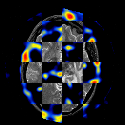 Click on sagittal image to select slice. Click on thin tickmark to change timepoint, or thick tickmark for overlay.