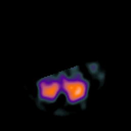 Click on sagittal image to select slice. Click on thin tickmark to change timepoint, or thick tickmark for overlay.
