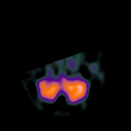 Click on sagittal image to select slice. Click on thin tickmark to change timepoint, or thick tickmark for overlay.