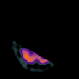 Click on sagittal image to select slice. Click on thin tickmark to change timepoint, or thick tickmark for overlay.