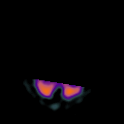 Click on sagittal image to select slice. Click on thin tickmark to change timepoint, or thick tickmark for overlay.