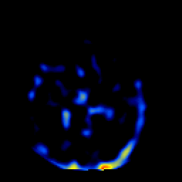Click on sagittal image to select slice. Click on thin tickmark to change timepoint, or thick tickmark for overlay.