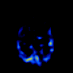 Click on sagittal image to select slice. Click on thin tickmark to change timepoint, or thick tickmark for overlay.