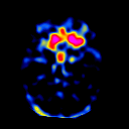 Click on sagittal image to select slice. Click on thin tickmark to change timepoint, or thick tickmark for overlay.