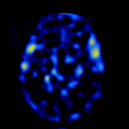 Click on sagittal image to select slice. Click on thin tickmark to change timepoint, or thick tickmark for overlay.