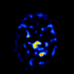 Click on sagittal image to select slice. Click on thin tickmark to change timepoint, or thick tickmark for overlay.