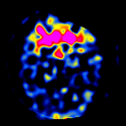 Click on sagittal image to select slice. Click on thin tickmark to change timepoint, or thick tickmark for overlay.