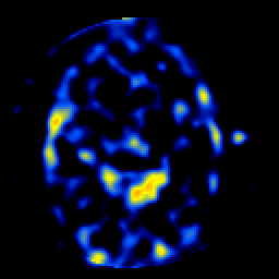 Click on sagittal image to select slice. Click on thin tickmark to change timepoint, or thick tickmark for overlay.