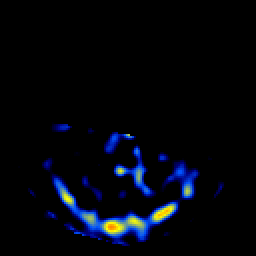 Click on sagittal image to select slice. Click on thin tickmark to change timepoint, or thick tickmark for overlay.