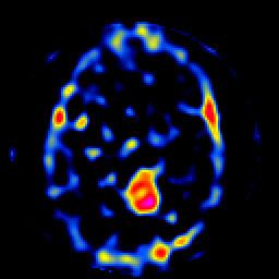 Click on sagittal image to select slice. Click on thin tickmark to change timepoint, or thick tickmark for overlay.