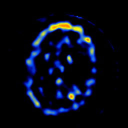 Click on sagittal image to select slice. Click on thin tickmark to change timepoint, or thick tickmark for overlay.