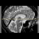 Click on sagittal image to select slice. Click on thin tickmark to change timepoint, or thick tickmark for overlay.
