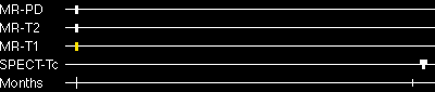 Click on sagittal image to select slice. Click on thin tickmark to change timepoint, or thick tickmark for overlay.