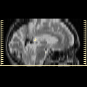 Click on sagittal image to select slice. Click on thin tickmark to change timepoint, or thick tickmark for overlay.