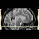 Click on sagittal image to select slice. Click on thin tickmark to change timepoint, or thick tickmark for overlay.
