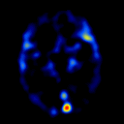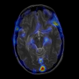 Click on sagittal image to select slice. Click on thin tickmark to change timepoint, or thick tickmark for overlay.