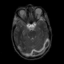 Click on sagittal image to select slice. Click on thin tickmark to change timepoint, or thick tickmark for overlay.