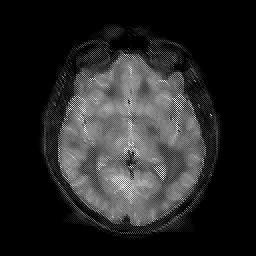 Click on sagittal image to select slice. Click on thin tickmark to change timepoint, or thick tickmark for overlay.