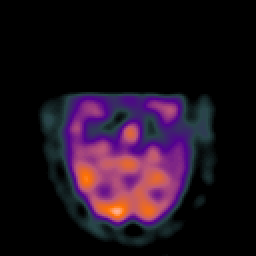 Click on sagittal image to select slice. Click on thin tickmark to change timepoint, or thick tickmark for overlay.