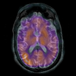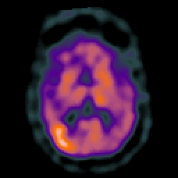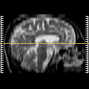 Click on sagittal image to select slice. Click on thin tickmark to change timepoint, or thick tickmark for overlay.