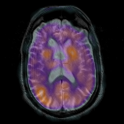 Click on sagittal image to select slice. Click on thin tickmark to change timepoint, or thick tickmark for overlay.