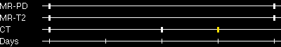 Click on sagittal image to select slice. Click on thin tickmark to change timepoint, or thick tickmark for overlay.
