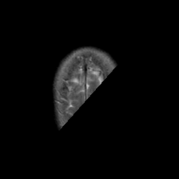 Click on sagittal image to select slice. Click on thin tickmark to change timepoint, or thick tickmark for overlay.