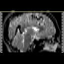 Click on sagittal image to select slice. Click on thin tickmark to change timepoint, or thick tickmark for overlay.