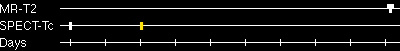 Click on sagittal image to select slice. Click on thin tickmark to change timepoint, or thick tickmark for overlay.