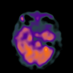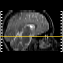 Click on sagittal image to select slice. Click on thin tickmark to change timepoint, or thick tickmark for overlay.