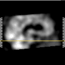 Click on sagittal image to select slice. Click on thin tickmark to change timepoint, or thick tickmark for overlay.