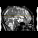 Click on sagittal image to select slice. Click on thin tickmark to change timepoint, or thick tickmark for overlay.