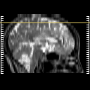 Click on sagittal image to select slice. Click on thin tickmark to change timepoint, or thick tickmark for overlay.