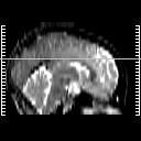 Click on sagittal image to select slice. Click on thin tickmark to change timepoint, or thick tickmark for overlay.