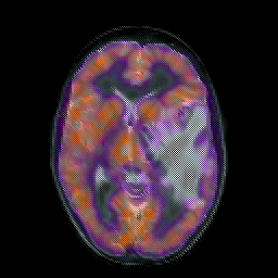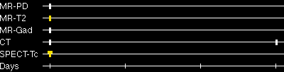 Click on sagittal image to select slice. Click on thin tickmark to change timepoint, or thick tickmark for overlay.