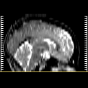 Click on sagittal image to select slice. Click on thin tickmark to change timepoint, or thick tickmark for overlay.