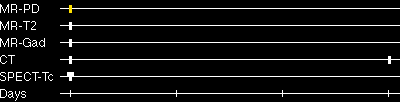 Click on sagittal image to select slice. Click on thin tickmark to change timepoint, or thick tickmark for overlay.