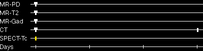 Click on sagittal image to select slice. Click on thin tickmark to change timepoint, or thick tickmark for overlay.