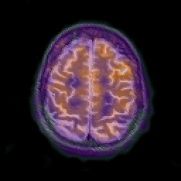 Click on sagittal image to select slice. Click on thin tickmark to change timepoint, or thick tickmark for overlay.